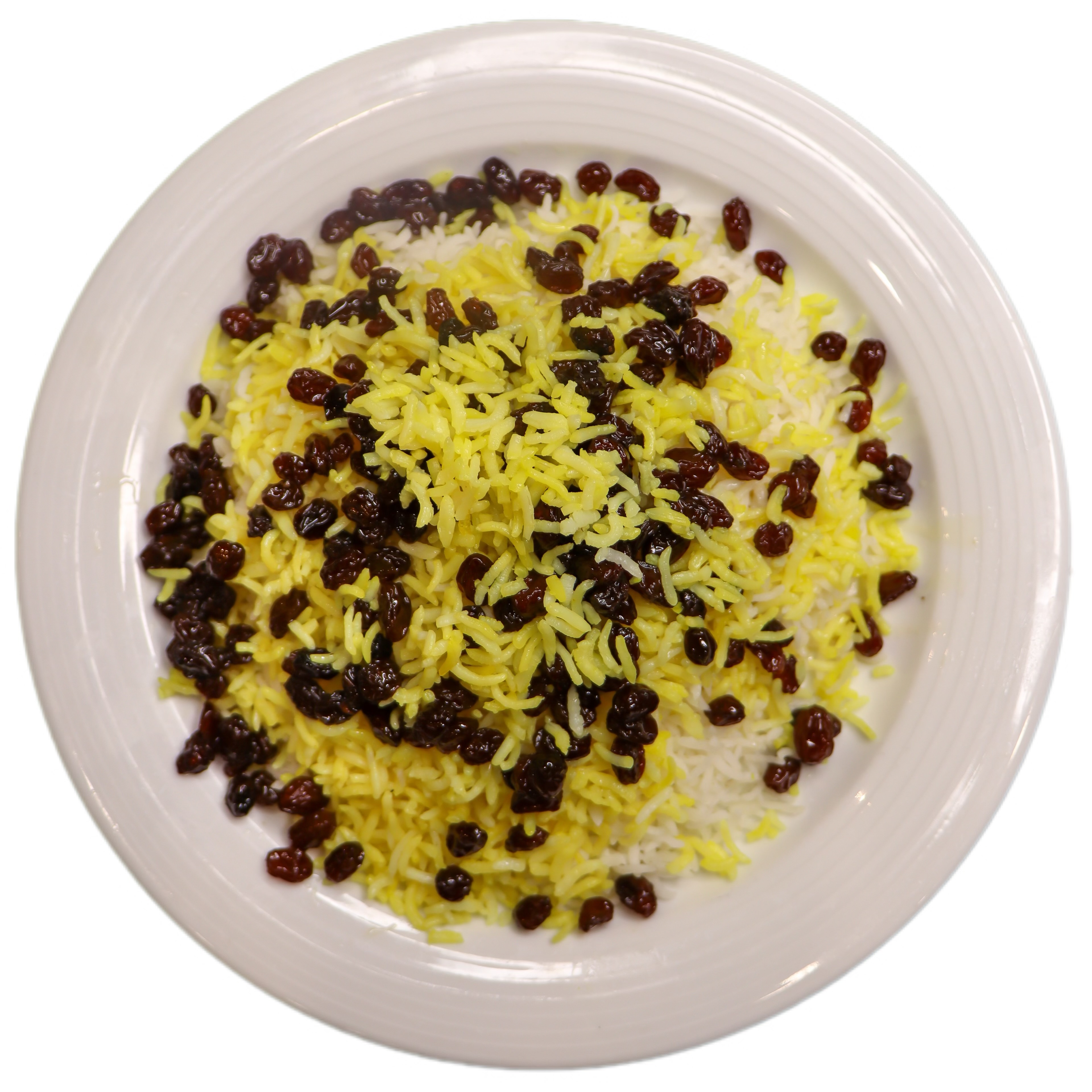 370 گرم برنج پخته شده، 50 گرم کشمش با سرکش زعفرانی