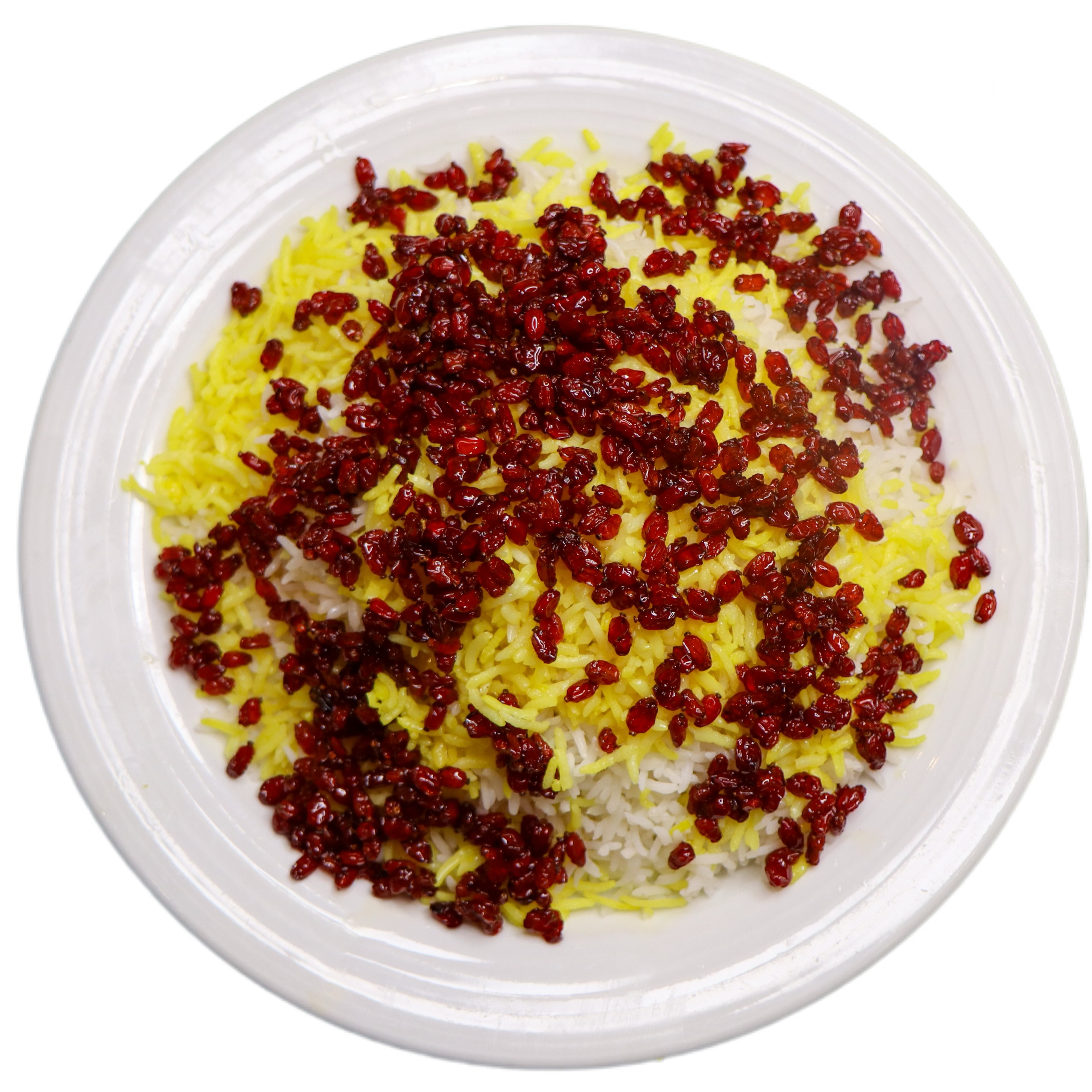 370 گرم برنج پخته شده، 50 گرم کشمش با سرکش زعفرانی